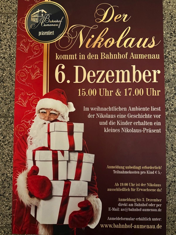 - Ankündigung "Der Nikolaus" kommt in den Aumenauer Bahnhof am 06.12.2025: Link zur Ankündigung