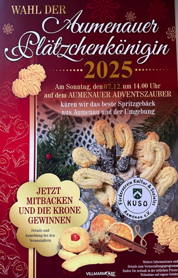 - Ankündigung Wahl der "Aumenauer Plätzchenkönigin" am 07.12.2025: Link zur Ankündigung